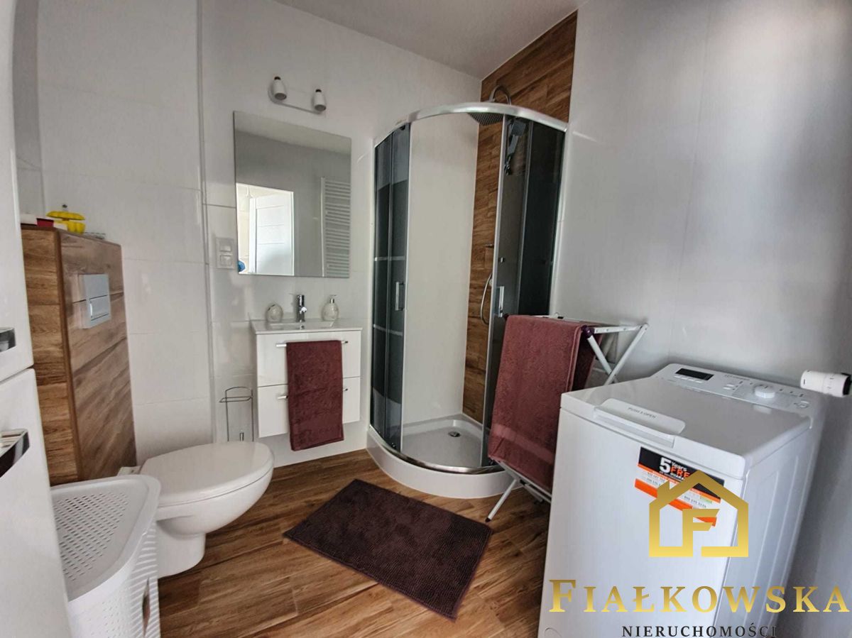 sypialni oraz łazienki z kabiną prysznicową, pralką automatyczną oraz WC.