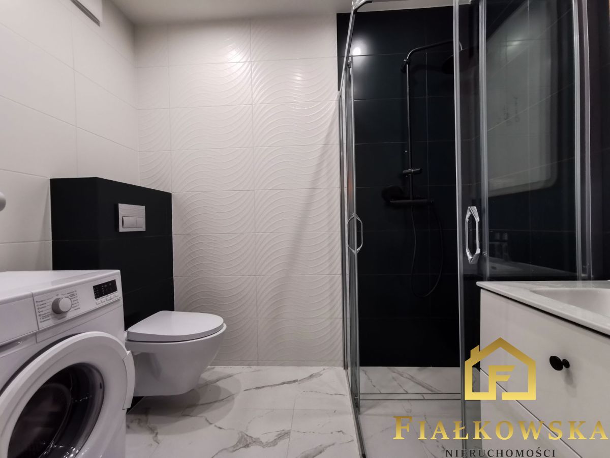 Na podłodze panel podłogowy. Ściany gładzone, malowane. W łazience na podłodze i ścianach płytka. Łazienka wyposażona w dobrej jakości armaturę i ceramikę oraz pralkę. W całym mieszkaniu zabudowa meblowa wykonana na wymiar. Kuchnia wyposażona w nowy sprzęt AGD.